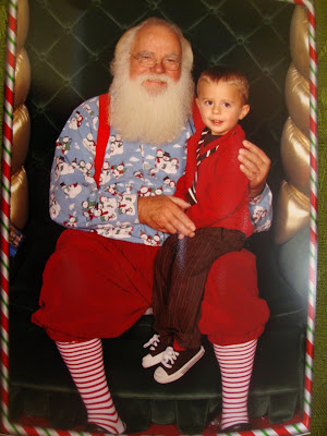 Ok I don't know if anyone remembers the picture with Santa from last year but it was horrible. (i'll post it again) Anyway this year he LOVES Santa . He gave him a hug and told him he wants Buzz for christmas. I think he only likes him because he gives "deets" (treats). Whatever, it is so cute.